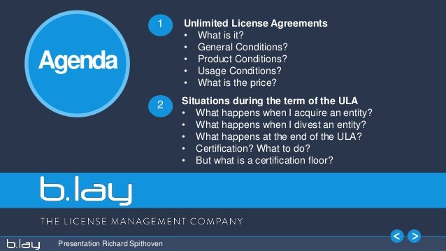 Unlimited License Agreements Certification Date and Term of the Agreement deployment of Oracle programs. This will be the number of licenses on which the ULA will be certified. Time pressure or misunderstandings of the agreement often lead to only the ... Retrieve Full Source