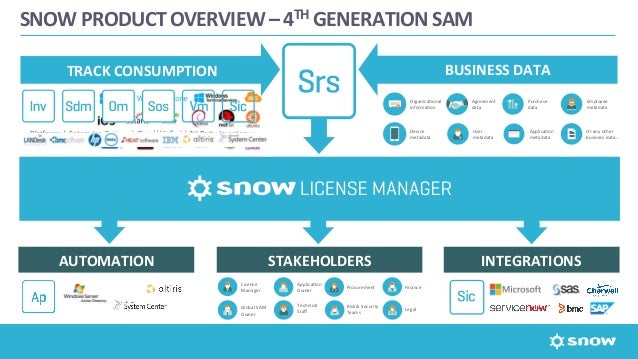 The Snow Integration Connector for ServiceNow provides help desk operatives and service management professionals with actionable Software Asset Management safeguard the US $320 billion spent each year on enterprise software. Snow License Manager is designed to reduce the risk, ... Content Retrieval